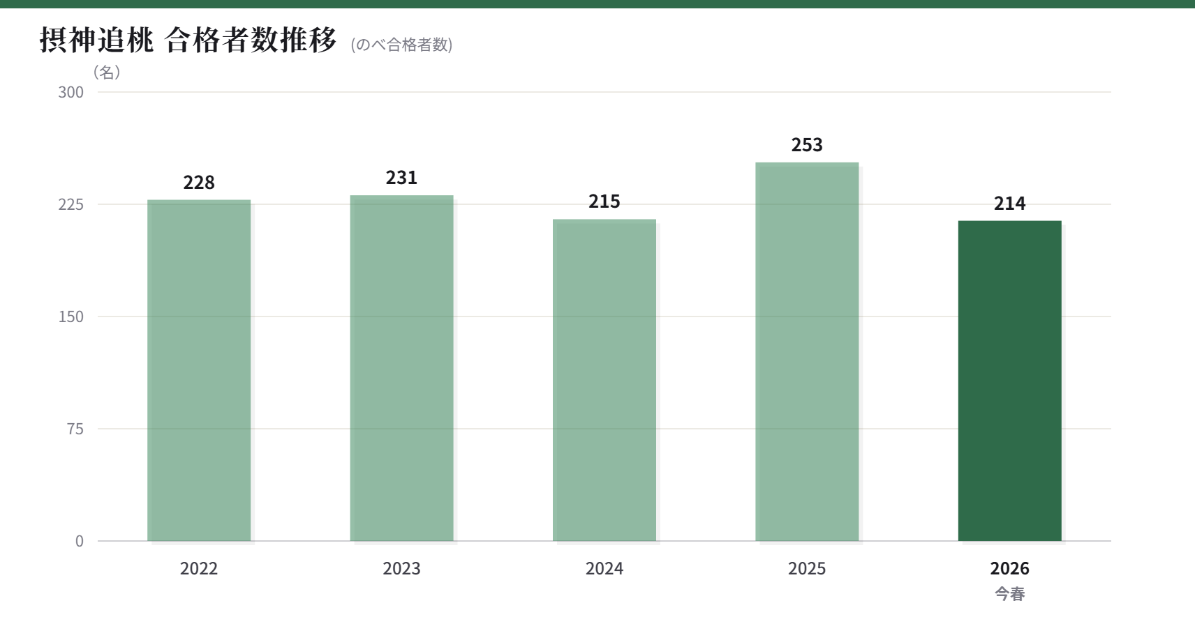 摂神追桃は214名合格。特に追手門学院大60名、摂南大に50名、連携校である桃山学院大には104名と多数の合格が出ています。