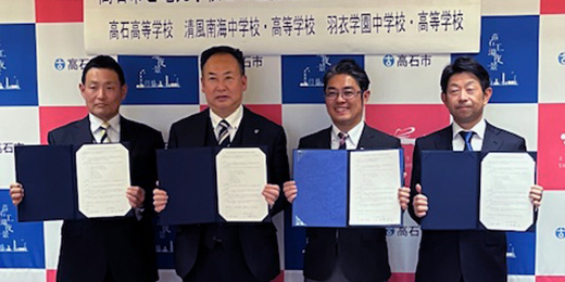 本学園は、高石市内の高石高校・清風南海学園とともに、市と「包括連携協定」を2024年に締結。 地域課題に取り組み、高石市の発展に寄与するとともに、生徒たちの学びに生かしていくことになりました。こうした地域貢献につながる活動を通して、勉学に励むだけでなく、社会に出てから役立つ知識や経験を身に着けます。